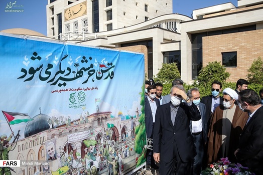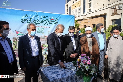 به مناسبت روز جهانی قدس، مراسم اهتزاز پرچم بزرگ فلسطین، عصر پنجشنبه ۱ خرداد ۱۳۹۹ با حضور مسئولان کشوری و استانی بر روی برج بزرگ پرچم ساختمان شهرداری استان قم برگزار شد.