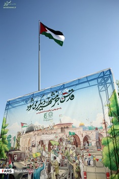 تصاویر/ اهتزاز پرچم بزرگ فلسطین در قم