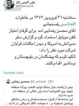 تصاویر/ توئیت محسن رضایی سوژه توئیتریها شد