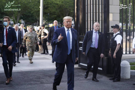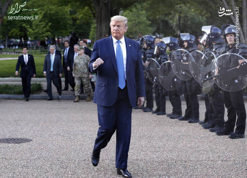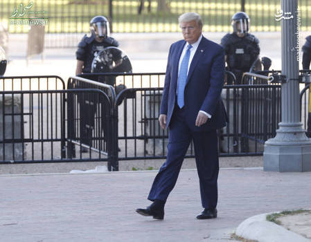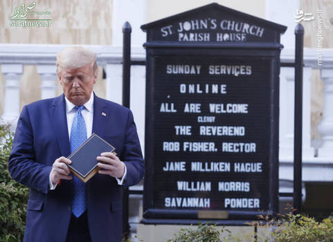 ترامپ بدون اعلام قبلی از کاخ سفید خارج شد و با قدم زدن به مقابل کلیسای سنت جان رفت و در آنجا با گرفتن انجیلی در دست وعده برخورد سخت با معترضان و آشوبگران را داد.