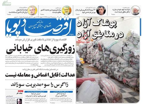 همچنین افزایش خودسر نرخ لوازم خانگی ممنوع، جزئیات مصوبه مزد ۹۹، بساط توصیه و سفارش از سازمان مالیاتی جمع می شود، عطش خرید سهام تهدید و فرصتی برای دولت است، بازار خودرو چشمانتظار پیشفروشها از جمله مهمترین تیترهای روزنامه های اقتصادی امروز به شمار می رود.
