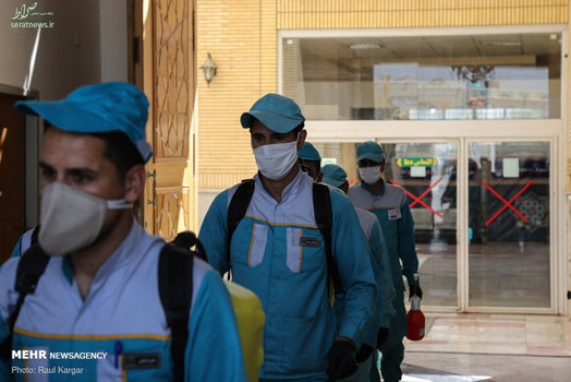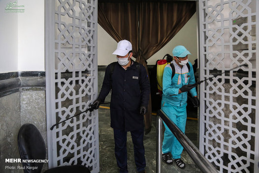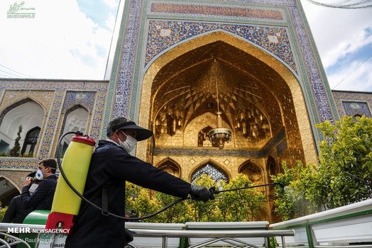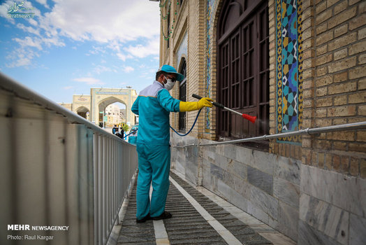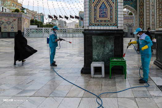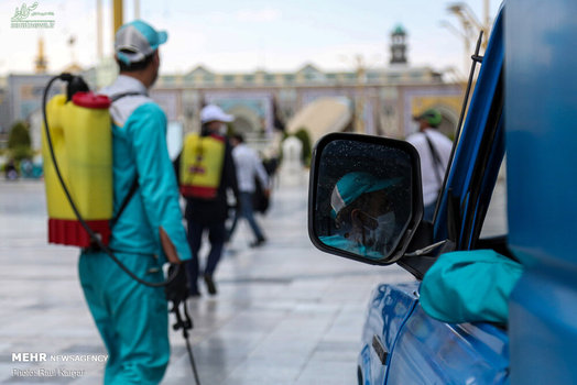 به منظور حفظ سلامت زائران، اماکن متبرکه حرم مطهر رضوی شامل رواقها و صحنها و تمام مکانهایی که زائران در آن رفت و آمد دارند بطور مداوم توسط خدمه ضدعفونی میشود.