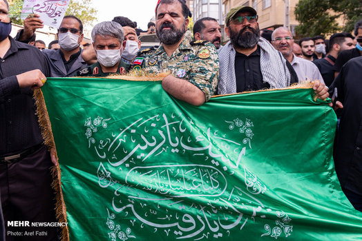 مراسم تشییع پیکر فرمانده شهید مدافع حرم «جواد الله کرم» پس از ۴ سال دوری از وطن امروز همزمان با سالروز شهادت امام صادق (ع) در مقابل دانشگاه علوم و فنون هوایی شهید ستاری تهران برگزاری شد.