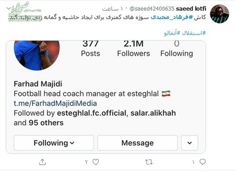 او پس از این بازی تمامی کسانی را که در شبکه اجتماعی اینستاگرام دنبال میکرد، آنفالو کرد. اما همین اقدام عجیب و قهرآمیز فرهاد مجیدی باعث شروع کنایهها به تیم استقلال به ویژه او شد و کاربران شبکه اجتماعی توئیتر سر شوخی را با سرمربی جدید استقلال باز کردند و مطالبی را با یکدیگر به اشتراک گذاشتند.