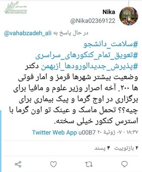 در شرایطی که دوره جدید شیوع ویروس کرونا در اکثر شهر‌های کشور به شرایط قرمز یا نزدیک به آن رسیده است، وزارت علوم و سازمان سنجش مصر به برگزاری کنکور در شرایط کرونایی هستند و می‌گویند با رعایت پروتکل ها ان‌شاالله مشکلی پیش نمی آید. گفتنی است امروز تعداد فوتی‌های ناشی از کرونا در کشور به ۲۰۰ نفر رسید.