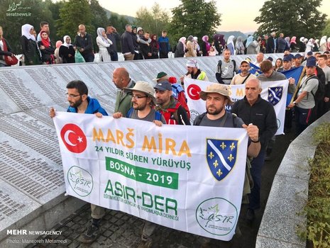 هرساله مردم بوسنی و هرزگوین به همراه مهمانانی از سراسر جهان سه روز قبل از سالگرد این فاجعه بشری در هیئت جمعی هزاران نفری گرد هم میآیند و با همراهی جمعی از خانواده شهدا و بازماندگان این حادثه به شکل نمادین مسیری ۱۱۰ کیلومتری تا شهر سربرنیتسا را راهپیمایی و با حضور در قبرستان پوتوچاری در حومه سربرنیتسا که محل تدفین شهدای تفحص شده این جنایت است به مقام شهدای این نسل کشی ادای احترام و یاد و خاطرهشان را زنده نگه میدارند. این حرکت ارزشمند مردمی که هرساله بین روزهای هشتم تا یازدهم جولای برگزار میشود با عنوان راهپیمایی صلح «مارش میرا» شناخته میشود و چشم آزادی خواهان در سراسر جهان را به خود جلب میسازد.