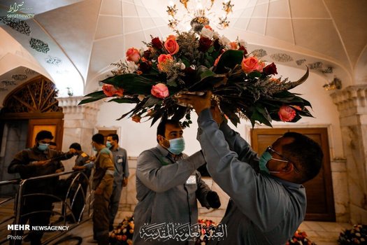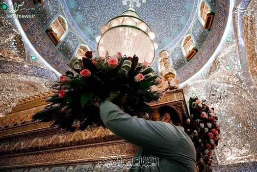 تصاویر/ گل آرایی ضریح امام علی (ع)