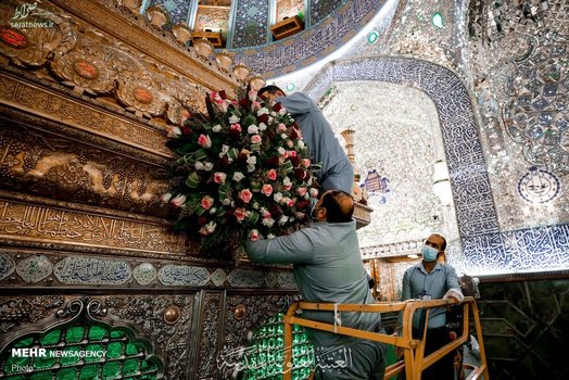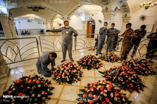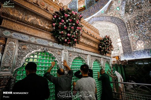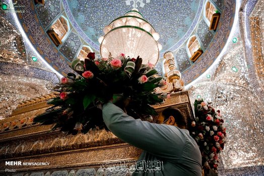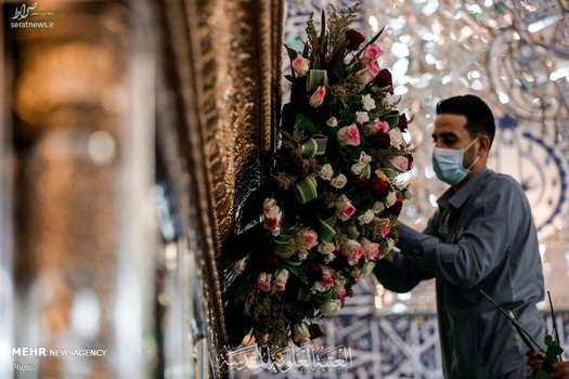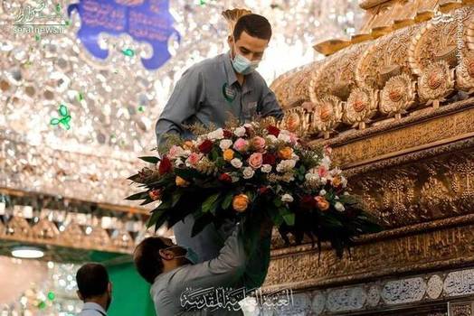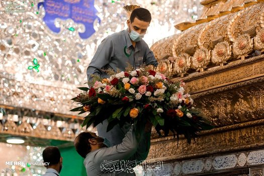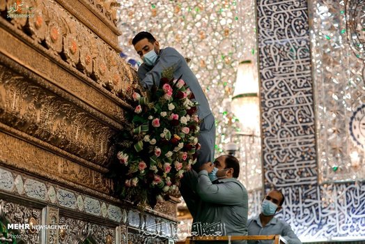 ضریح مطهر امام علی (ع) در آستانه عید غدیر خم گل آرایی شد.