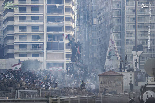پس از انفجار انبار متعلق به جریان سعدالحریری در بندر بیروت، صدها نفر در اعتراض به سوء مدیریت و فساد در این کشور به خیابان آمدند و در میدان شهدای بیروت خساراتی را به اموال عمومی وارد کردند.
