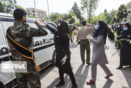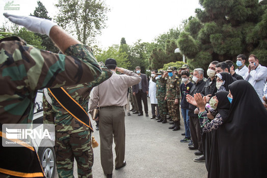 مراسم تشییع پیکر شهید مدافع سلامت سرهنگ پزشک اصغر عیسی آبادی صبح یکشنبه با حضور امیر کیومرث حیدری فرمانده نیروی زمینی ارتش در بیمارستان خانواده برگزار شد.