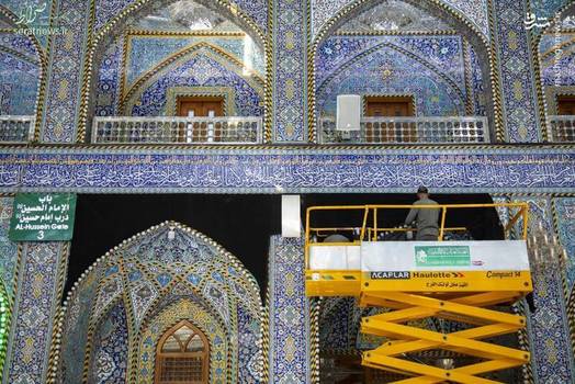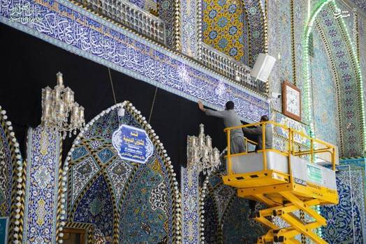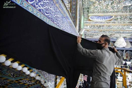 خادمان حرم مطهر حضرت عباس(ع) در شهر کربلای معلی، سیاه پوش کردن این بارگاه مقدس را در آستانه ماه محرم آغاز کردند.