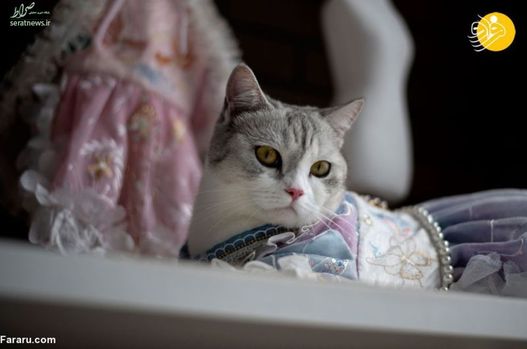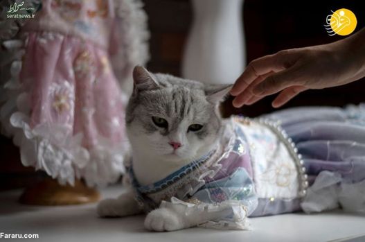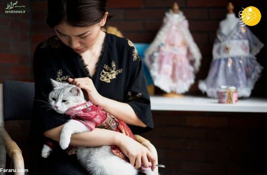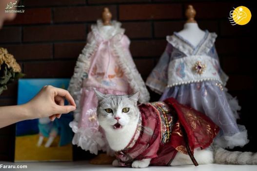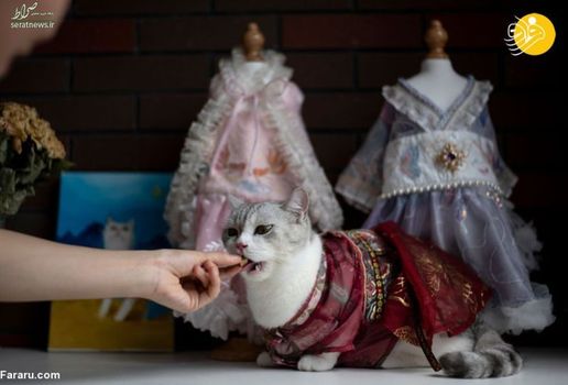 وو چوچا صاحب این گربه و طراح لباس برای حیوانات خانگی است. او این لباس ها را با پارچه ابریشمی رنگی دوخته و گلدوزی و تزئین می کند.