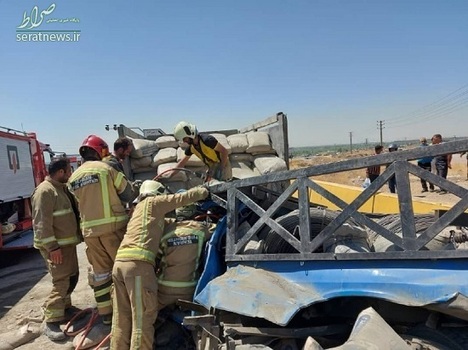 وی خاطرنشان کرد: قسمت جلوی خودروی نیسان تقریباً زیر خودروی شورلت قرار گرفته، تعدادی از کیسههای سیمان خالی شده و دو سرنشین که در خودروی نیسان حضور داشتند، در وضعیت بسیار نامناسبی در اتاقک کاملاً ویران شده این خودرو محبوس بودند.