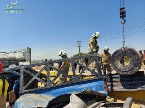 به گزارش تسنیم سخنگوی سازمان آتشنشانی و خدمات ایمنی تهران ادامه داد: در محل حادثه مشاهده شد یک دستگاه خودروی نیسان حامل بار آهن، به دلیل نامشخصی به شدت با یک دستگاه خودروی شورلت باری قدیمی حامل کیسههای سیمان (مانند خاور که قابلیت حمل بار دارد) برخورد کرده است.