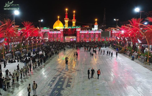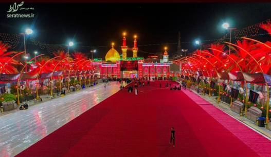 شب گذشته بینالحرمین نیز پس از برگزاری عزاداری در کربلا، با کفپوشها قرمز مفروش شد که البته قبل از قراردادن کفپوشها، پلاستیکهایی بر روی زمین بینالحرمین قرار دادند. هر سال در آستانه تاسوعا و عاشورای حسینی بینالحرمین با کفپوش قرمز مفروش میشود و فضای این قطعه از بهشت با نورهای قرمز، روز خونین عاشورا را متجسم میکند.