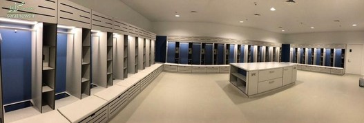 به گزارش تسنیم، تصاویر مربوط به اتاق سرمربی تیم، کادر فنی، اتاق تکنیکال، رختکن تیم و کمدهای رمزدار جداگانه که برای هر بازیکن تعبیه شده، در نوع خود در خور توجه است. همچنین در داخل محوطه رختکن تیمهای A و B در استادیوم الجنوب، محوطهای با چمن مصنوعی برای گرم کردن بازیکنان طراحی شده است. جکوزی، حوضچه آب سرد و گرم، تختهای ماساژ و دوشهای جداگانه نیز در این دو رختکن تعبیه شده است.