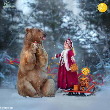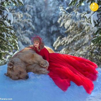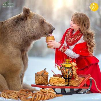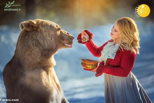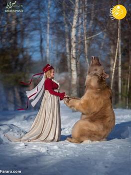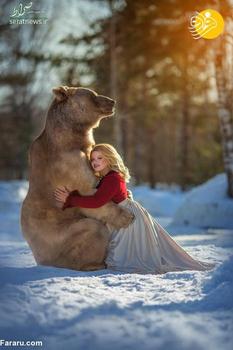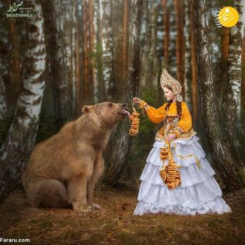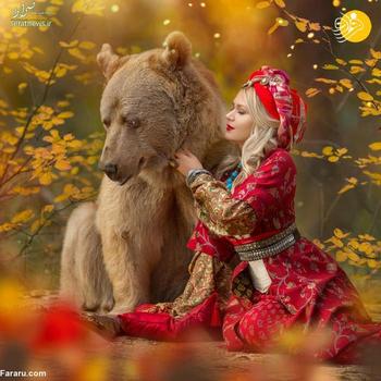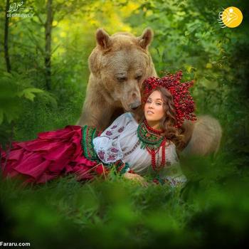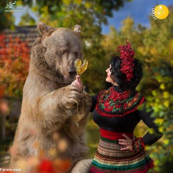 این خرس قهوه ای که 28 ساله است استپان نام دارد. میلا ژدانوا عکاس اهل مسکو با صاحبان این خرس دوست شده و از خرس آنها برای عکاسی در کنار مدل ها استفاده می کند.