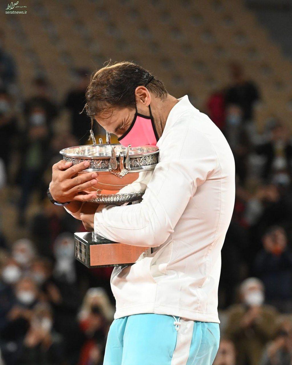 خبرآنلاین: رافائل نادال مرد شماره دو تنیس جهان با پیروزی مقتدرانه ۳ بر صفر مقابل نواک جوکوویچ برای سیزدهمین بار قهرمان رقابتهای رولان گاروس شد و رکورد خارقالعاده خود در این گرند اسلم را دستنیافتنیتر کرد. اما بیشک تصویری که بعد از قهرمانی او منتشر شد، یکی از زیباترین تصاویر ورزش در دوران کروناست. او که زحمات زیادی برای قهرمانی در رولان گاروس کشید اینگونه و به صورتی متفاوت جام قهرمانی را در آغوش کشید. نادال تا به حال هیچ وقت اینگونه جام قهرمانی را بغل نکرده بود.