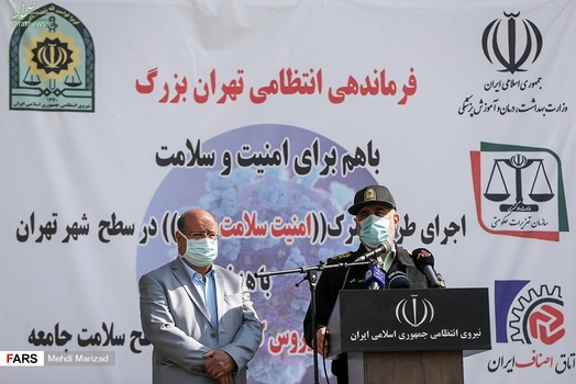طرح مشترک امنیت سلامت محور در سطح شهر تهران از ظهر امروز سهشنبه ۶ آبان ۱۳۹۹ با حضور سردار حسین رحیمی فرمانده انتظامی پایتخت و دکتر علیرضا زالی فرمانده ستاد مقابله با کرونا در ستاد فرماندهی پلیس تهران برگزار شد. فرمانده انتظامی پایتخت در حاشیه اجرای طرح مشترک امنیت سلامت محور گفت: در خصوص تدابیر ابلاغی پلیس با تمام توان و استفاده از ظرفیت پلیس راهور، پلیس پیشگیری، یگان امداد، گشتیها و حتی حدود ۵۰ گشت امنیت برای کمک به سلامت و اجرای مصوبات ستاد ملی کرونا حضور فعال دارد و تا این لحظه به ۳۶۳ هزار نفر که ماسک نزده بودند تذکر دادیم.
