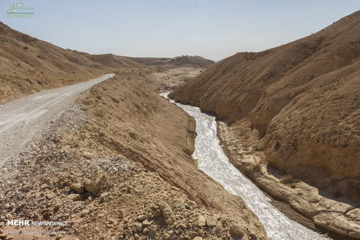 پسابهای صنعتی یکی از کارخانههای جنوب شهرستان سرخه و در شمال روستای بیابانک با عبورهای از میان کوهها مسیر ۴۰ کیلومتری را پیموده و به کویر میریزد.