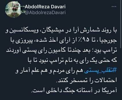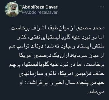 قیاسهای عجیب در توئیتهای عبدالرضا داوری، مشاور سابق احمدینژاد، واکنشهای گستردهای در توئیتر به همراه داشته.