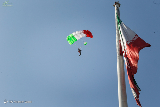 تصاویر/ پرش چتربازان از برج پرچم عباس آباد