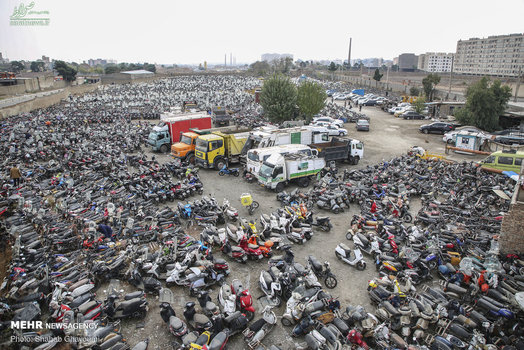 حدود ۶۰ تا ۷۰ هزار موتورسیکلت بنا بر علل مختلف اعم از تخطی از قوانین راهنمایی و رانندگی، شکایات قضائی و تصادف جرحی و فوتی در پارکینگهای شهر تهران نگهداری میشوند و تعداد زیادی از این موتورسیکلتها با توجه به هزینه بالای رفع توقیف و عدم مراجعه صاحبان موتور سیکلت ها بعضاً سالهای سال در پارکینگ دچار رسوب میشوند و از بین میروند.