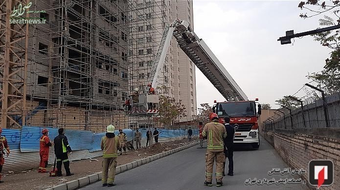 ساعت 14:36 روز گذشته درپی تماس کارگران ساختمانی با سامانه 125 مبنی بر احتمال سقوط کارگر از طبقات فوقانی یک ساختمان 25 طبقه، ستاد فرماندهی آتشنشانی تهران به سرعت آتشنشانان ایستگاه 69 و گروه امداد و نجات هشت به همراه خودروهای پشتیبانی را به محل حادثه واقع در بلوار کوهک، خیابان نسیم نهم اعزام کرد.