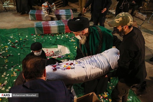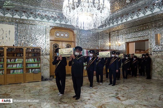 همزمان با سالروز شهادت حضرت فاطمه معصومه(س) آیین وداع با پیکر مطهر هفت شهید گمنام دفاع مقدس از طریق پخش زنده تلوزیونی در حرم مطهر برگزار شد. این ۷ پیکر مطهر که از شهدای عملیات های کربلای ۵، رمضان و... بودند، پس از طواف گرد ضریح مطهر حرم و اقامه نماز توسط آیت الله سعیدی امام جمعه قم، بدون حضور مردم در محل های تعیین شده در نقاط مختلف شهر به خاک سپرده شدند.