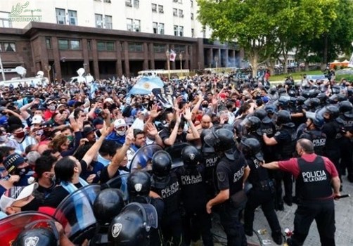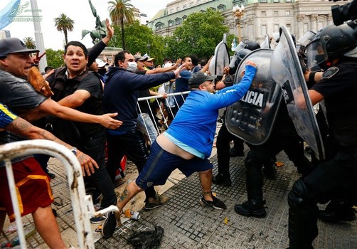 در حاشیه این مراسم که جمعیت زیادی از مردم آرژانتین و هواداران مارادونا حضور داشتند، تعدادی از آنها با پلیس درگیر شدند که این درگیری، منجر به زخمی شدن و بازداشت برخی از آنها شد.