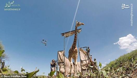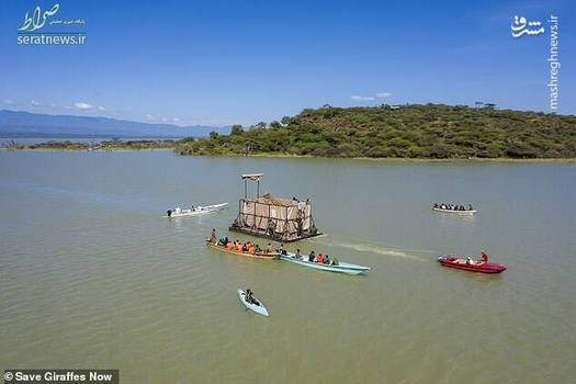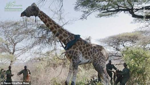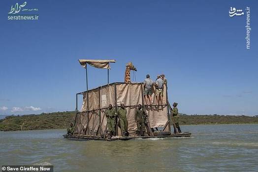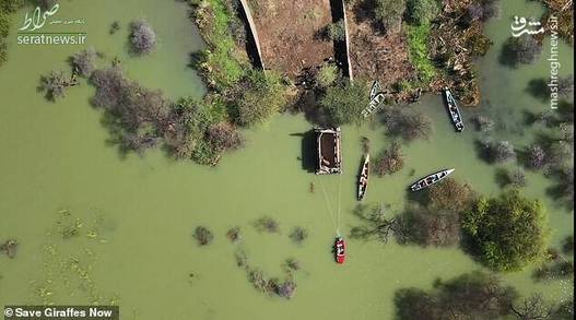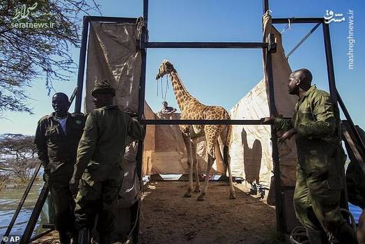 یک زرافه که در مناطق سیل زده کنیا گیر افتاده بود به کمک محیطبانها به مناطق امن منتقل شد.