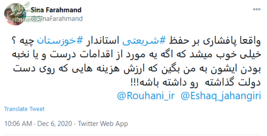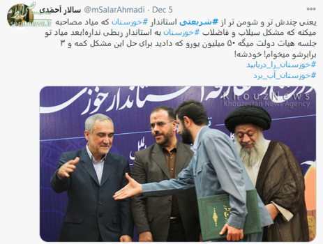 به گزارش باشگاه خبرنگاران مردم سیل زده خوزستان، مدیریت ناکارآمد مسئولان شهری و استانی به ویژه «غلامرضا شریعتی» استاندار وقت را یکی از علتهای اصلی وقوع و تکرار این حادثه میدانند. متاسفانه با وجود وقوع چندین سیل طی سالهای گذشته در این استان شریعتی هنوز موفق به حل این معضل نشده است. طی این سالها یکی از گلایههای خوزستانیها این است که او به جای پیگیری و حل مشکلات به دفعات در برنامههای صدا و سیما حاضر میشود، حرف میزند اما در عمل کاری برای مردم انجام نمیدهد؛ موضوعی که انتقاد و اعتراض کاربران فضای مجازی را هم به همراه داشته است.