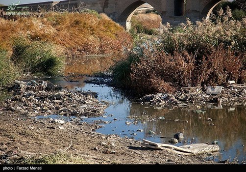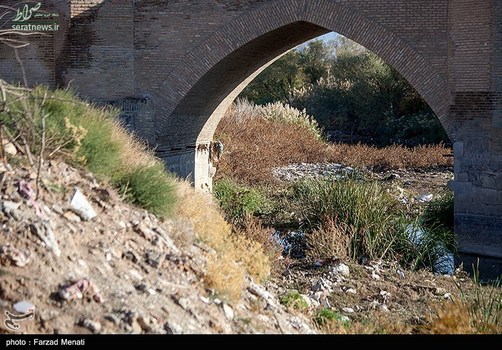 تصاویر/ پل تاریخی نادرآباد در باتلاق زبالهها