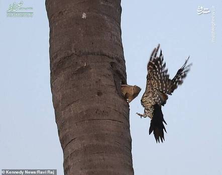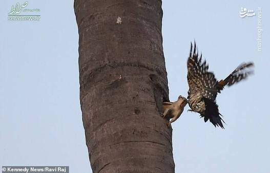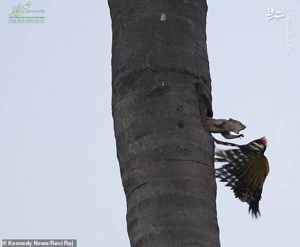 این تصاویر جالب از درگیری یک سنجاب با دارکوب در جنوب هند توسط یک نانوا به نام Ravi Raji به ثبت رسیده است.