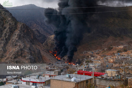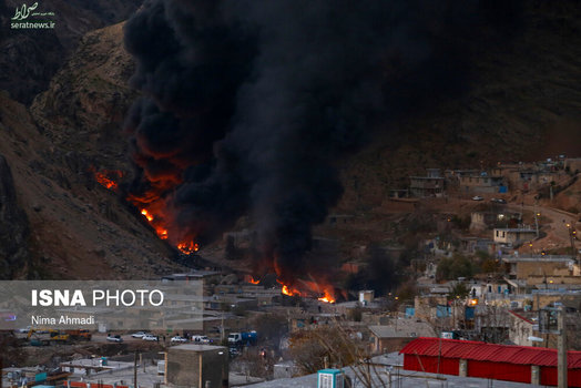 تصاویر/ آتش سوزی در خط لوله انتقال نفت مارون