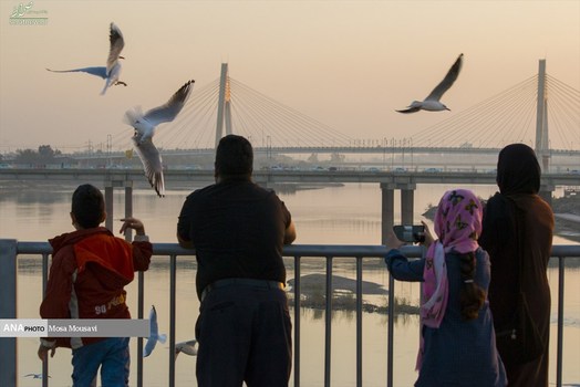 پل سفید (پل هلال) اهواز بر رودخانه کارون، که یکی از جاذبه های تاریخی این شهر بشمار می رود هر ساله میزبان پرندگان مهاجر است؛ که از اوایل پاییز تا پایان زمستان مهمان این پل و مردم اهواز هستند و نمای زیبایی به این رودخانه می بخشند. مردم اهواز در طول این مدت پذیرایشان هستند. این امر تبدیل به یک جاذبه و تفریح برای مردم محسوب می شود و در طول روز شاهد غذا دادن مردم به پرندگان هستیم.