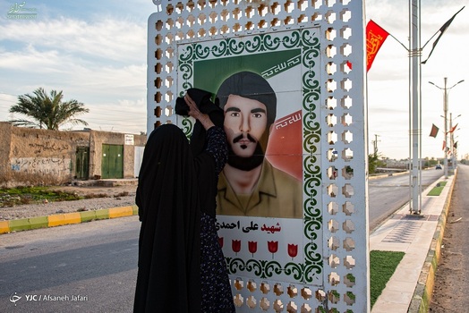 منیژه صحراگرد مادر شهید علی احمدی از روستای بنه گز شهرستان تنگستان استان بوشهر است. فرزند او شهید علی احمدی با تغییر سن خود در شناسنامه عازم جبهه شد و در جزیره موسیان به درجه رفیع شهادت نائل گردید. تصویر این شهید در خیابان اصلی نصب شده است و مادر شهید هر روز با شور و نشاط اقدام به تمیز کردن تصویر پسرش و دیگر شهیدان میکند. خانم صحراگرد هیچ وقت ابراز ناراحتی برای شهادت فرزندش نکرده است.