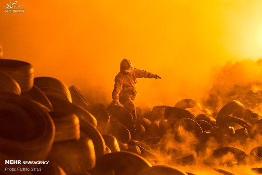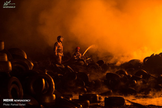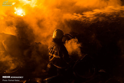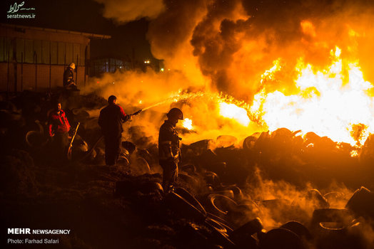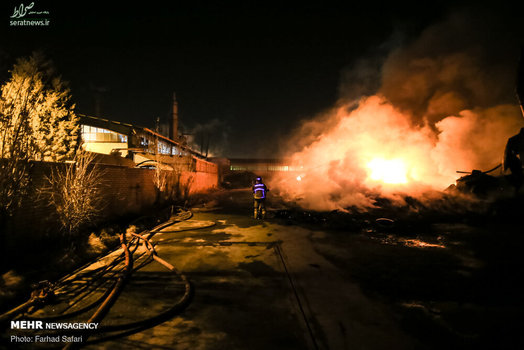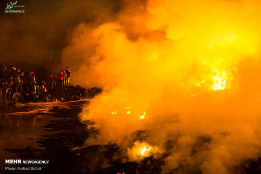 تصاویر/ انفجار و آتش سوزی در واحد بازیافت لاستیک