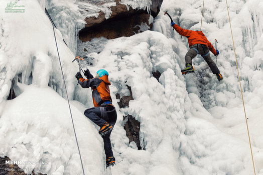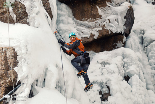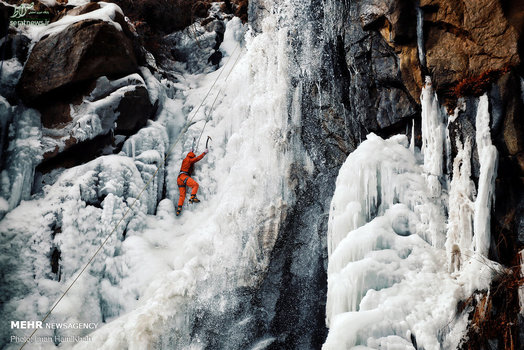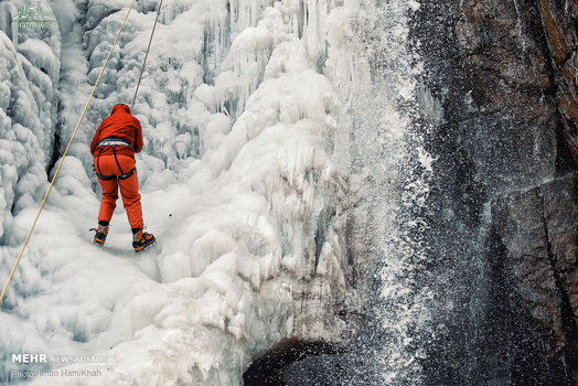 تصاویر/ یخ نوردی در آبشارگنجنامه