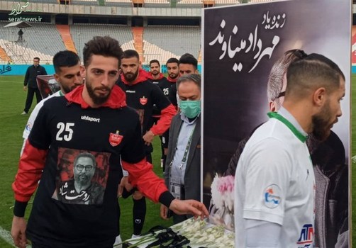* بازیکنان دو تیم با اهدای شاخه گلی به جایگاه یادبود میناوند، به بازیکن سابق پرسپولیس ادای احترام کردند.