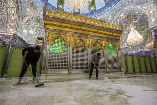 عکس/ غبار روبی حرم حضرت ابوالفضل(ع)