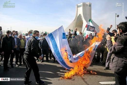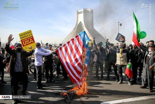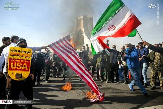 عکس/ آتش زدن پرچم آمریکا و اسرائیل در تهران