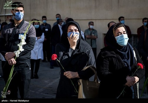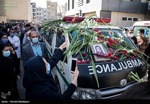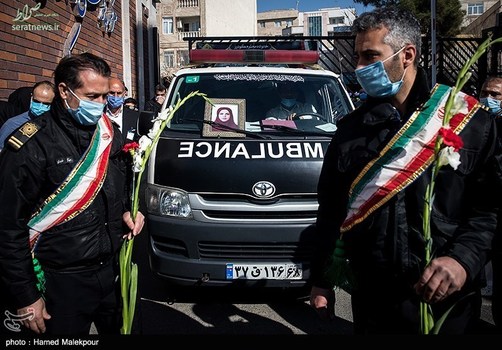 مراسم تشییع پیکر شهیده مدافع سلامت مهشید گودرز، پرستار باردار بخش کرونای مرکز پزشکی، آموزشی و درمانی لقمان که بر اثر کرونا به شهادت رسیده بود صبح امروز یکشنبه ۲۶ بهمن در بیمارستان لقمان حکیم تهران برگزار شد.