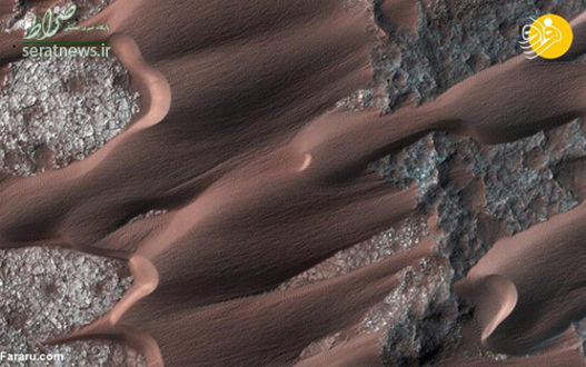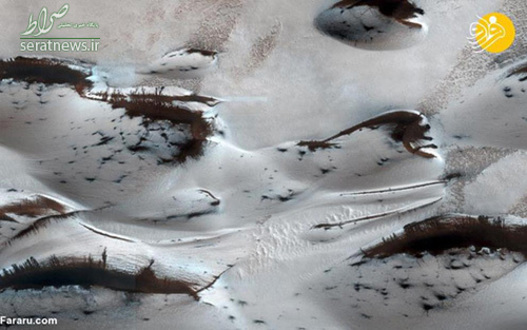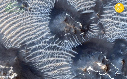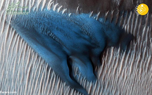 دوربین هایرایز (HiRISE) مداگرد شناسایی مریخ ناسا تصاویری خیره کننده از سطح مریخ ثبت کرده است. در تصاویر منتشر شده تپههای شنی و درههای کوچک و کریستالهای یخ به رنگهای قهوهای و آبی روشن دیده میشوند.