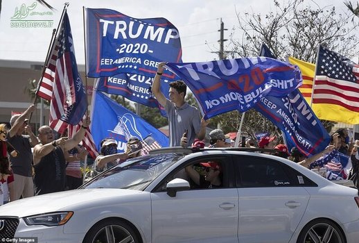 در جریان مراسم روز دوشنبه که گردهمایی "صلحطلب و میهنپرست" حامیان ترامپ بود، صدها تن از حامیان او بدون ماسک مقابل کلوب مارالاگو تجمع کرده، پرچم هایشان را تکان داده و این رئیس جمهور سابق را تشویق کردند.