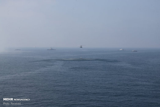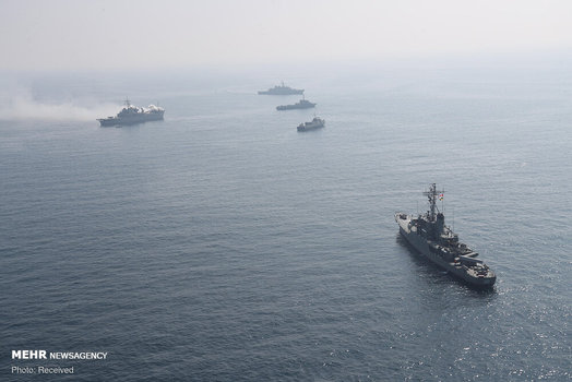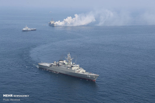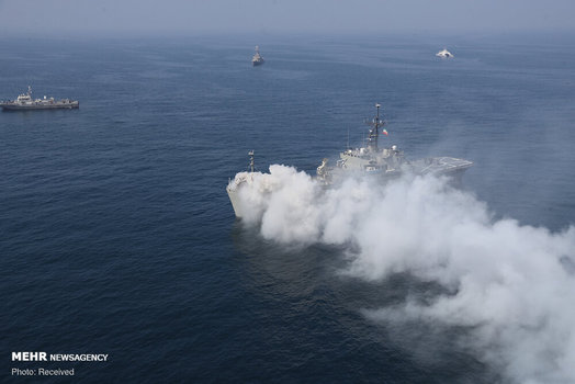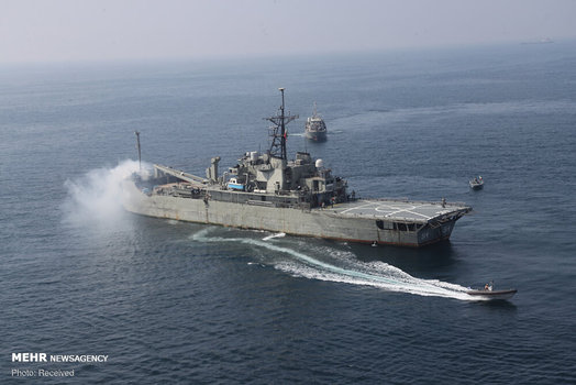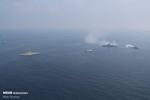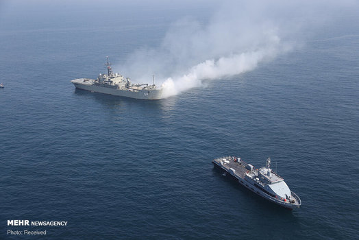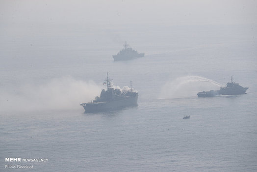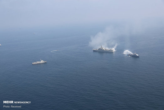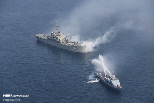 تصاویر/ اجرای عملیات اطفاء حریق در رزمایش مرکب دریایی