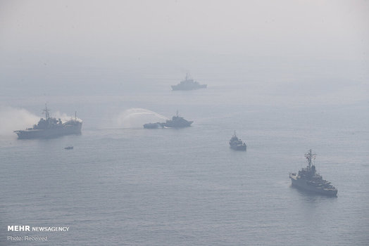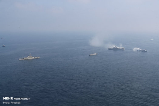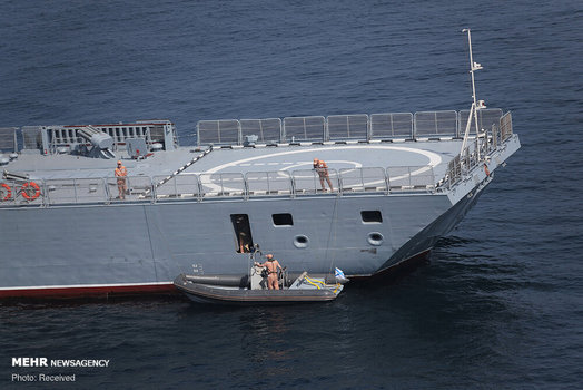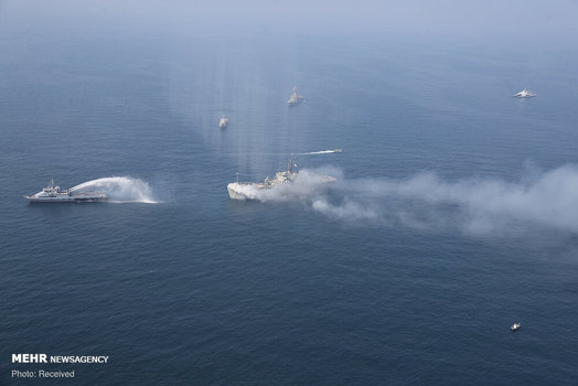 در مرحله دیگری از رزمایش مرکب امنیت دریایی شمال اقیانوس هند یگانهای شناور ایران و روسیه عملیات اطفای حریق را تمرین کردند.