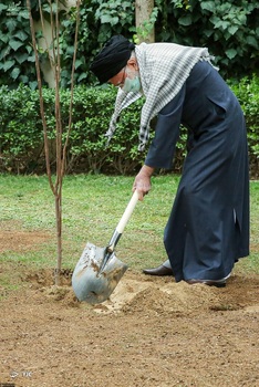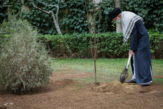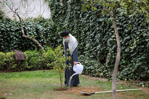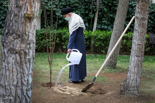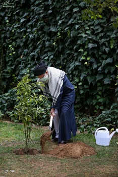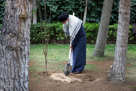 بهمناسبت روز درختکاری، حضرت آیتالله خامنهای، رهبر معظم انقلاب پیش از ظهر جمعه ۱۵ اسفند ۱۳۹۹ در محوطهی دفتر رهبری دو نهال میوه کاشتند.