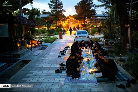 در شب های ماه مبارک رمضان، ماه میمانی خدا مردم روزه دار با حضور در گلزار شهدای بهشت زهرا(س)، دیگر روزه داران را به اطعام دعوت میکنند و روزه خود را در جوار مزار مطهر شهدا افطار میکنند. اینجا هر روز غروب سفرههای افطاری در کنار مزار شهدا برپاست.