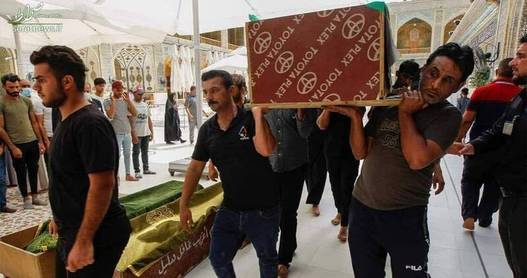 اجساد تعدادی از قربانیان فاجعه بیمارستان شب گذشته در بغداد برای خاکسپاری به نجف آورده شدند. تاکنون ۸۲ نفر در حادثه آتش سوزی بیمارستان ابن الخطیب جان خود را از دست داده و ۱۱۰ نفر زخمی شده اند.